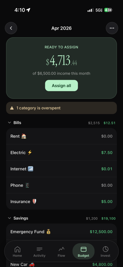- “Ready to Assign” makes it clear how much money you still have to allocate